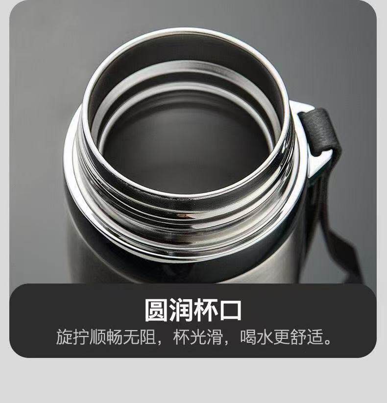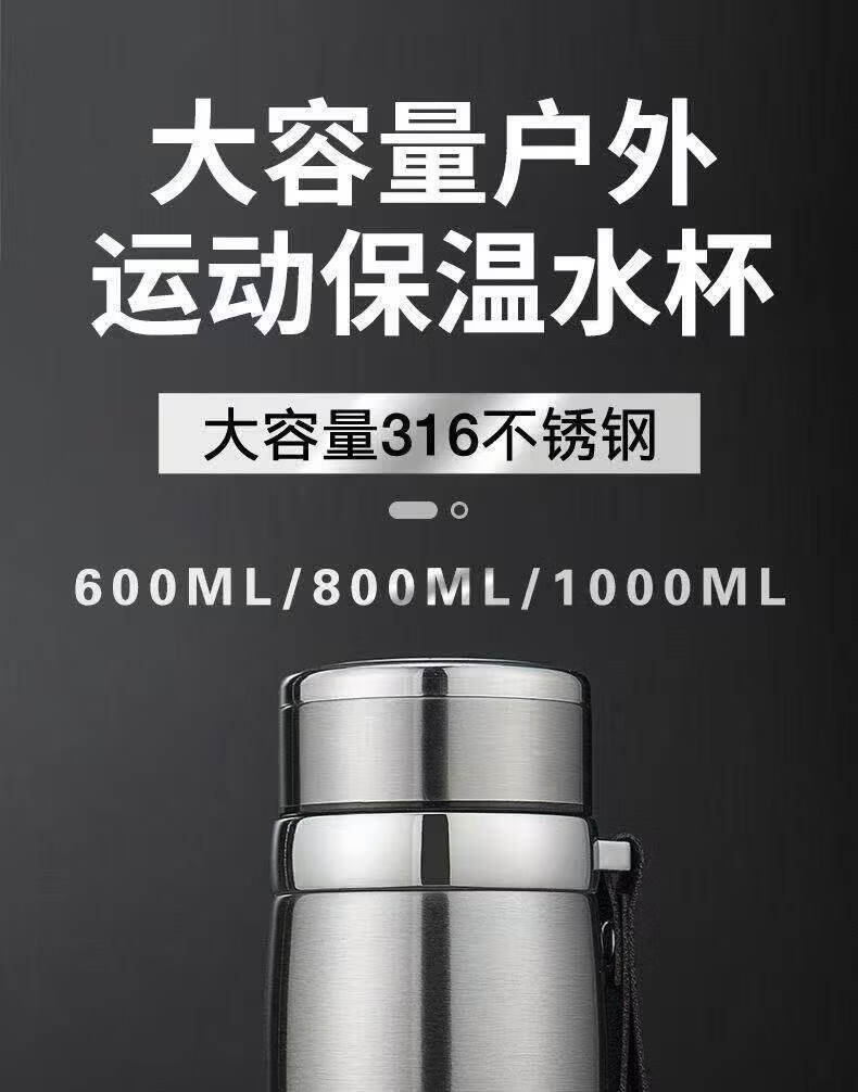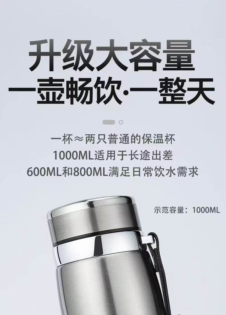 便携户外运动水杯大容量医院级不锈钢保温男女矮胖车载保温杯 黑色1000mL【长效保温】+茶隔
