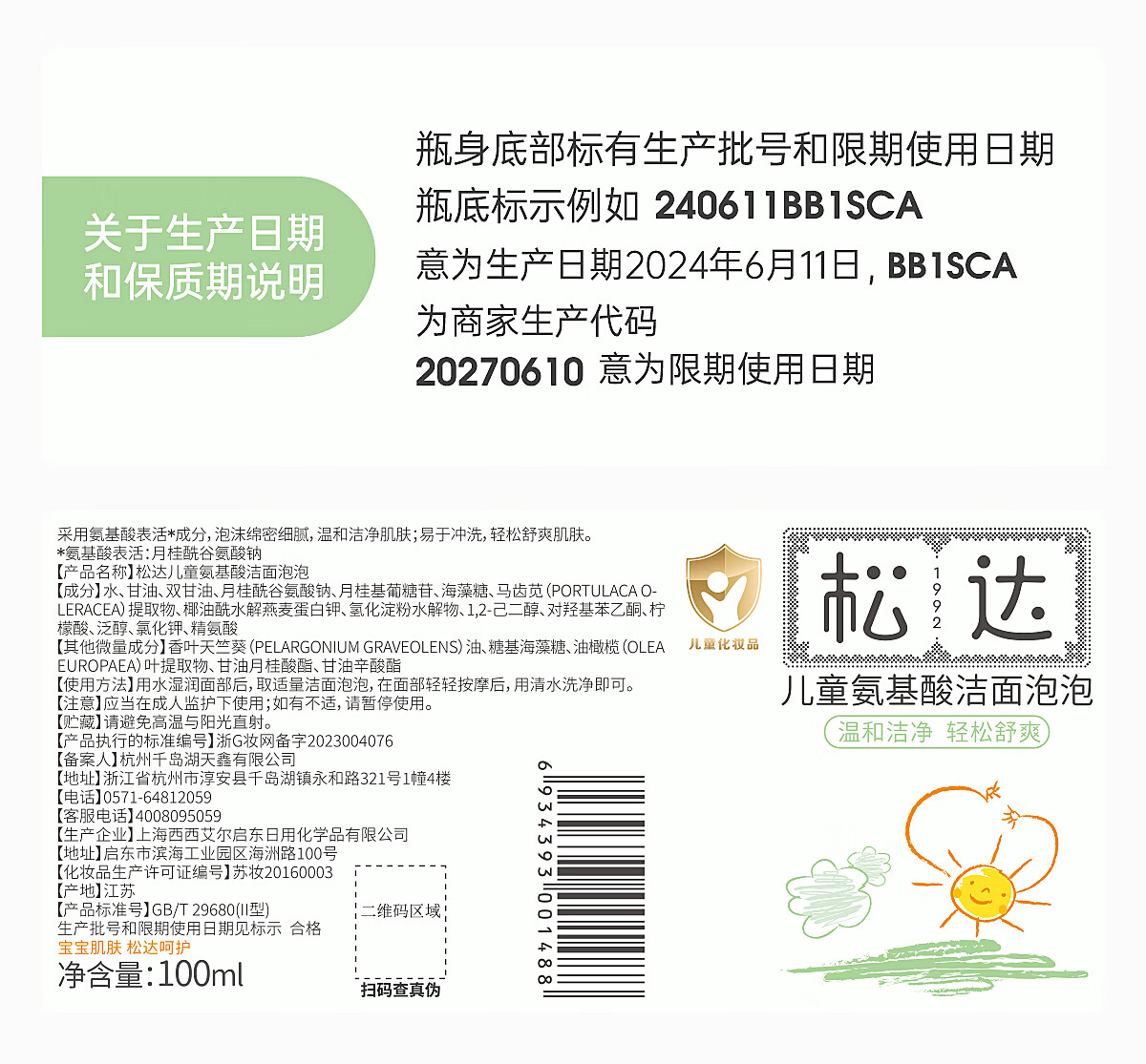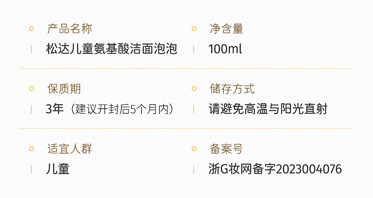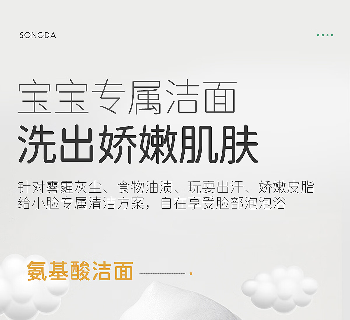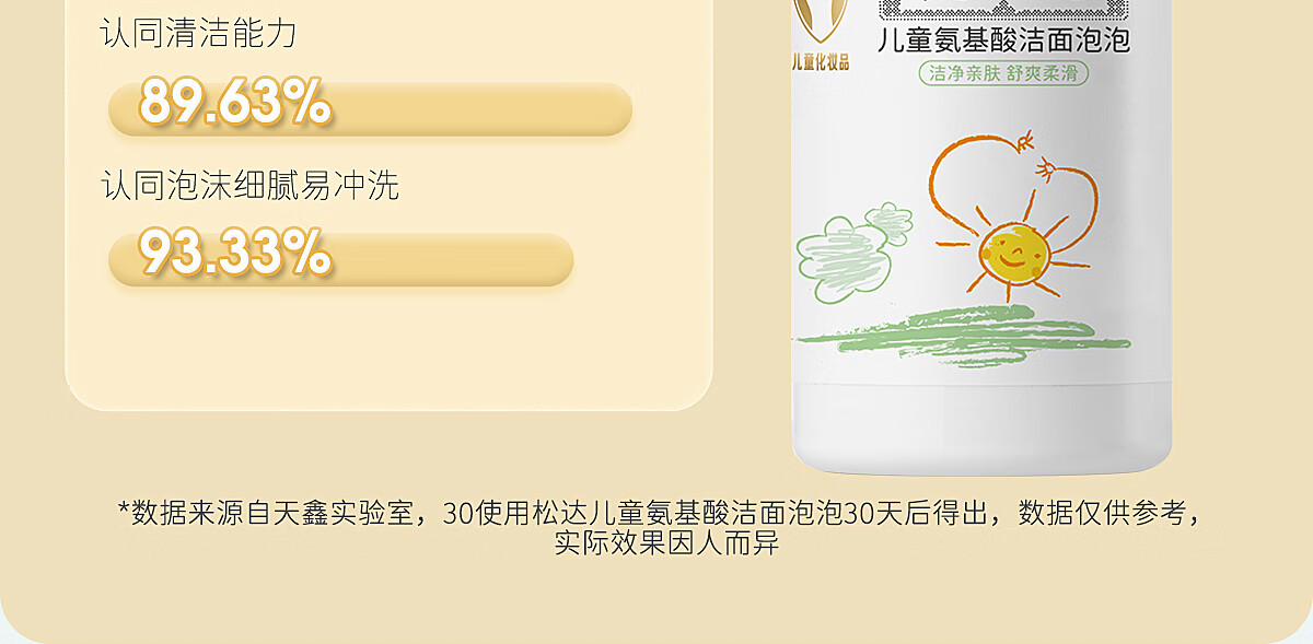 松达儿童氨基酸洁面泡泡儿童洗面奶宝宝护肤洁面乳【面部清洁】100ml